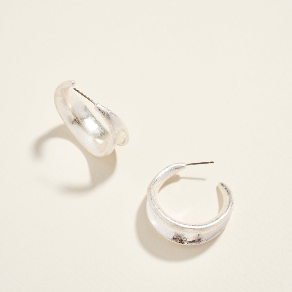 Sleek and structured, these metal hoop post earrings stand out with their indented finish. The textured surface creates dimension and a touch of luxury.