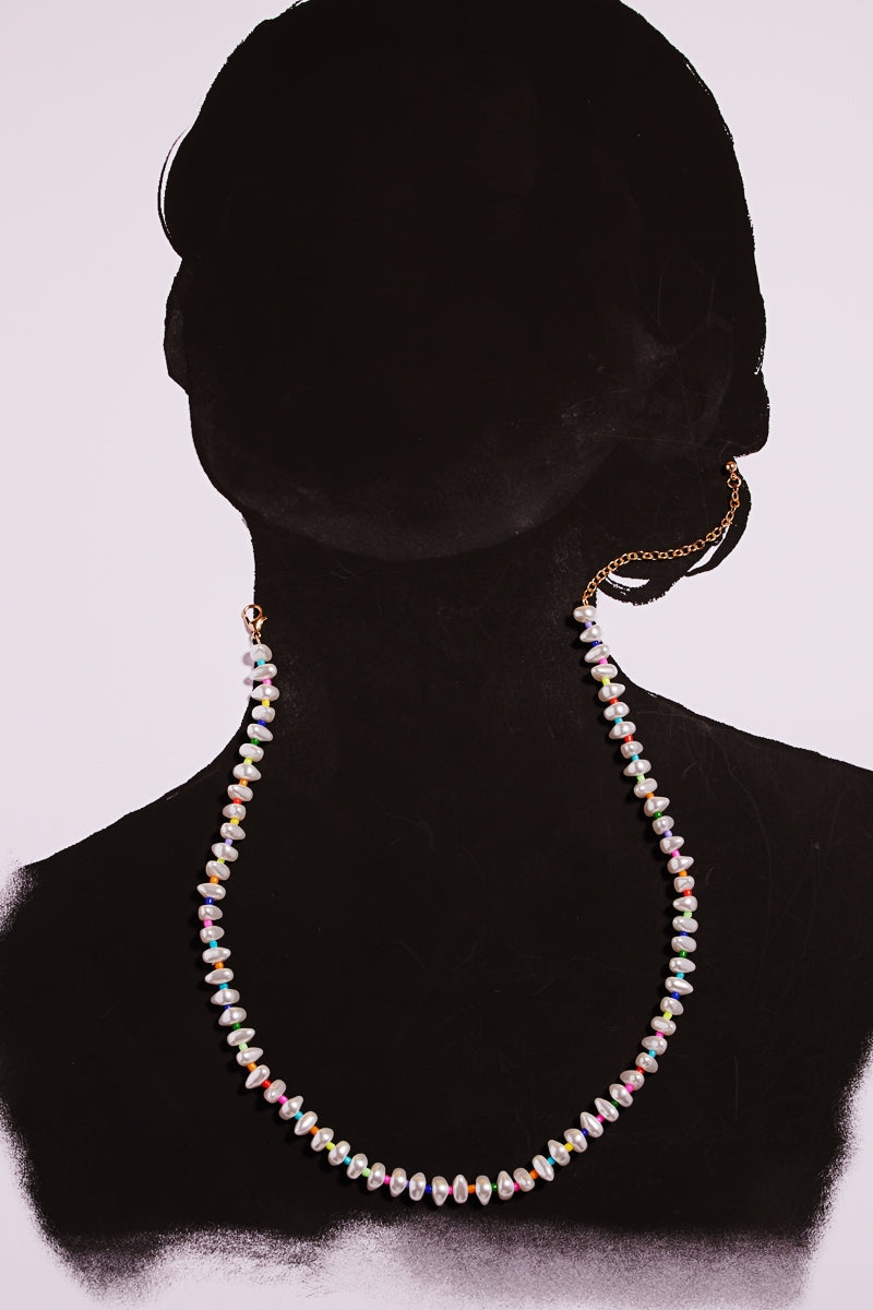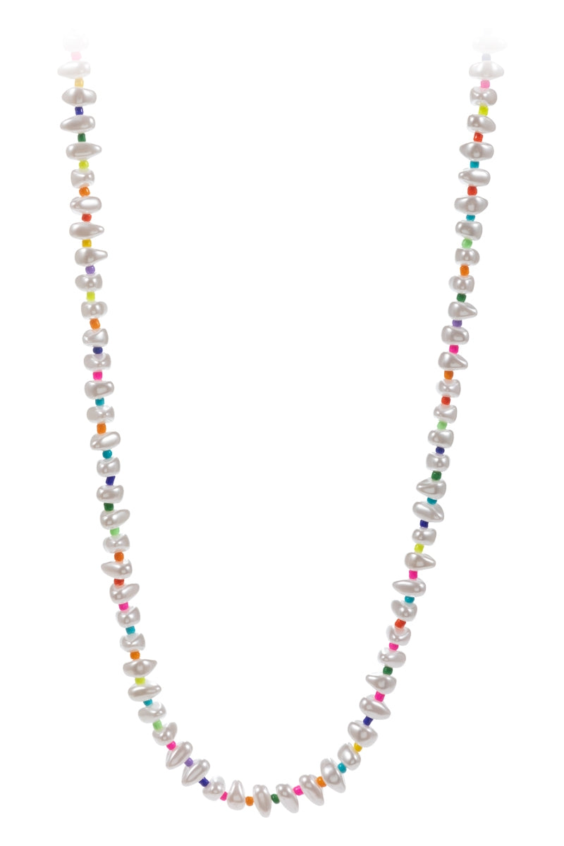 Organic Pearl Color Seed Bead Mixed Short Necklace