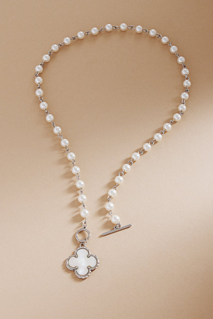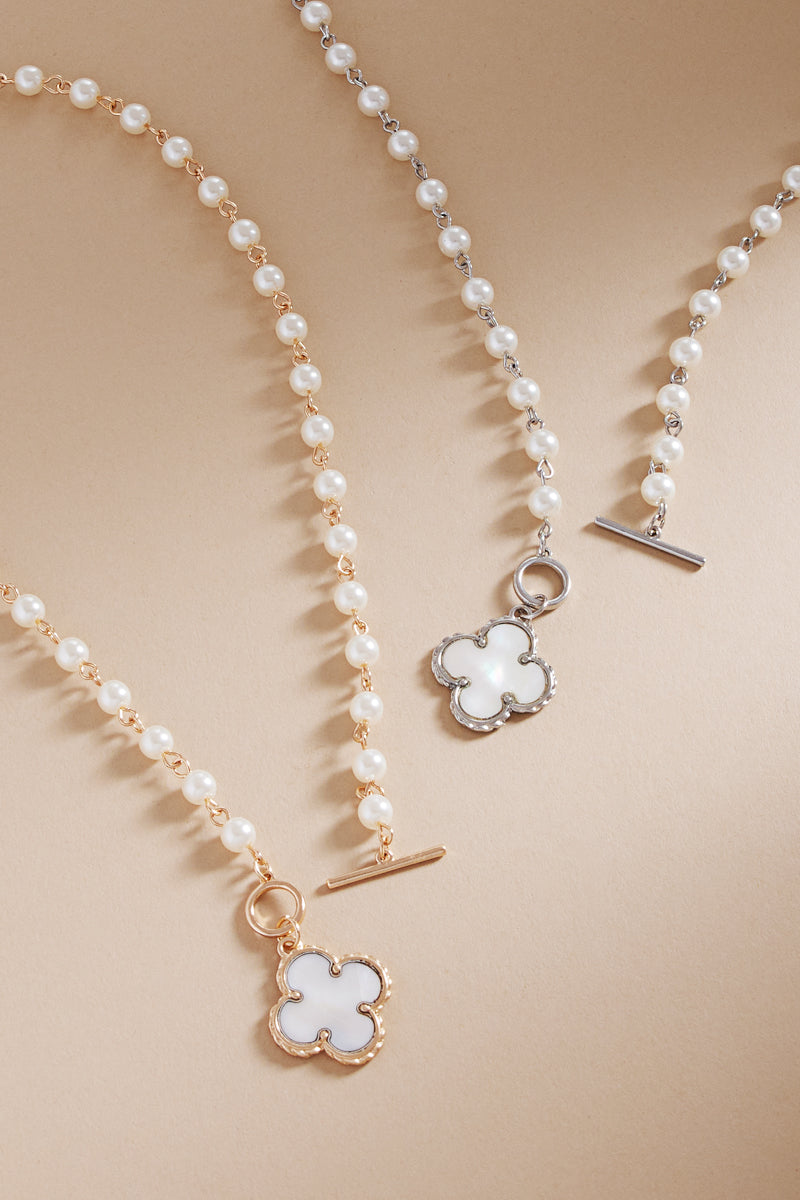 Introducing our 18-inch Quatrefoil shaped shell short necklace. Handmade with delicate shells, this necklace is a perfect blend of elegance and casual style. Its unique design is sure to make a statement. Add a touch of nature to your wardrobe with this beautiful piece.
